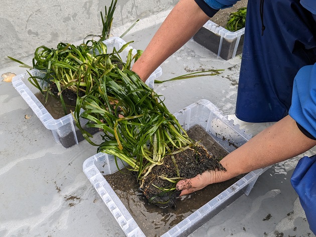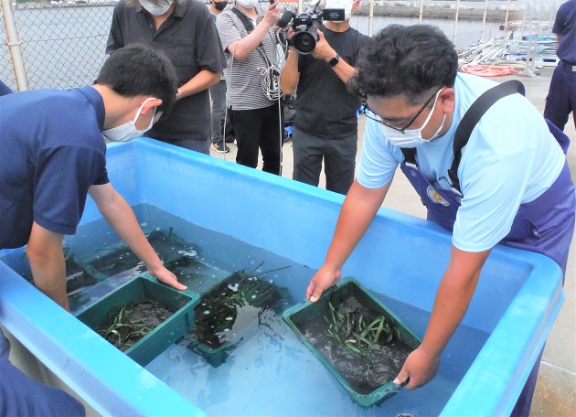 2022年、神奈川県立海洋科学高校からアマモ苗を搬入し、